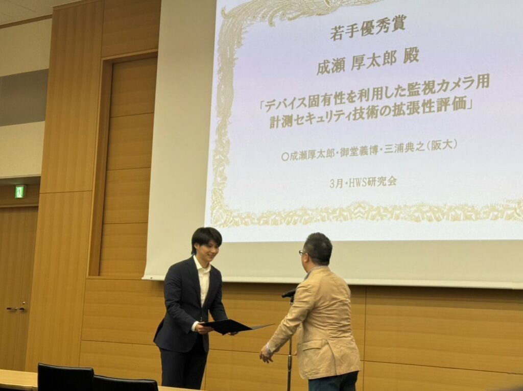 また、成瀬君がハードウェアセキュリティ研究会若手優秀賞を受賞しました。同賞に対する詳細はこちらを参照。これは、HWS・VLD・ICD合同研究会(2025年3月)での発表に対しての受賞です。